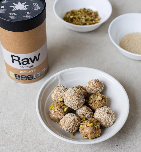 - With your hands, shape the mixture into small balls. If desired, roll each ball in sesame seeds and chopped pistachios for added flavour and texture.